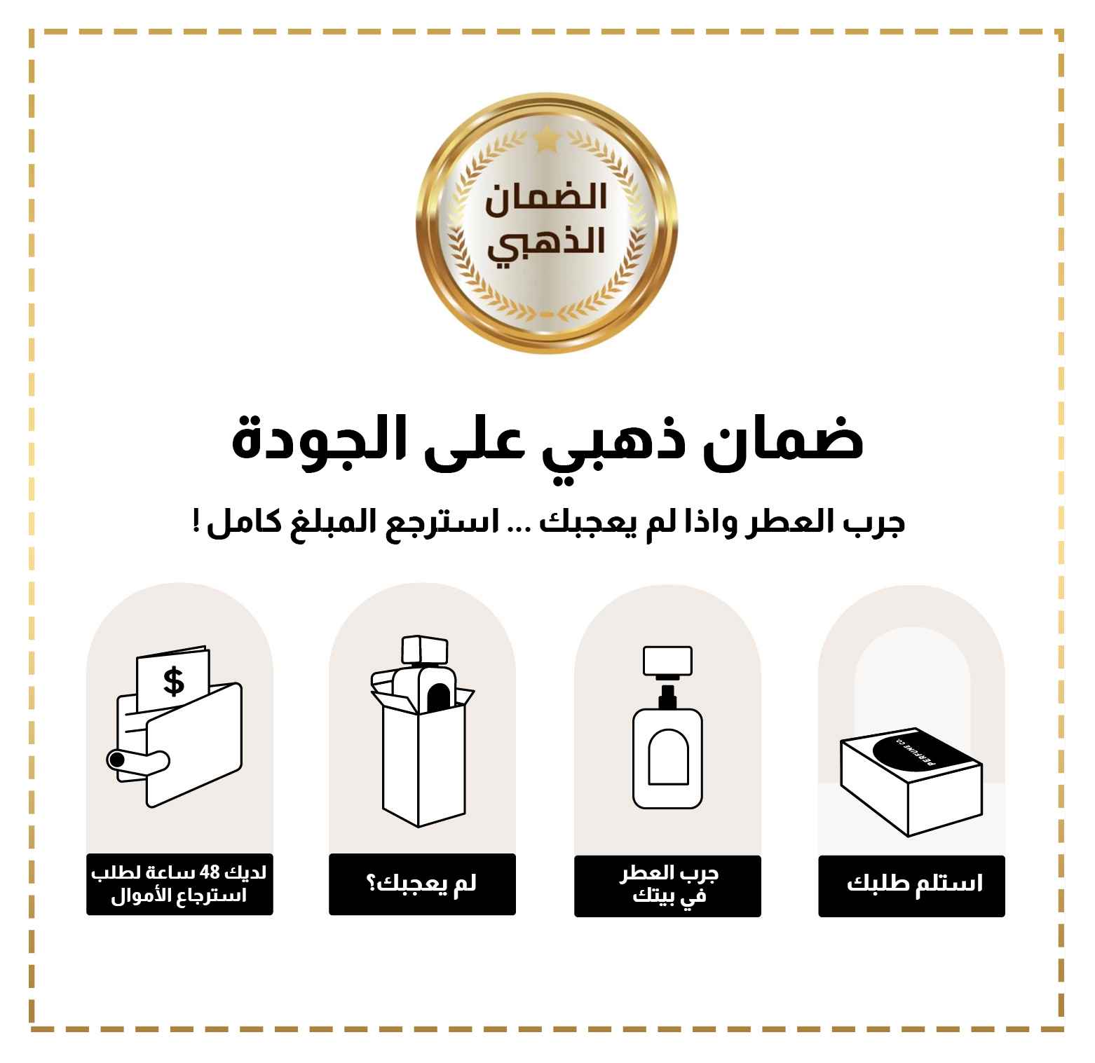 نحن نوفر سياسة استرجاع مدتها 7 أيام من تاريخ الاستلام، ويمكن للعميل إرجاع العطر فقط في حال وجود مشكلة في المنتج، بشرط أن تتم إعادته بنفس حالته الأصلية تماماً مع الحفاظ على علبته سليمة. بعد التحقق من حالة العطر، يتم استبداله أو استرجاع المبلغ حسب رغبتك.